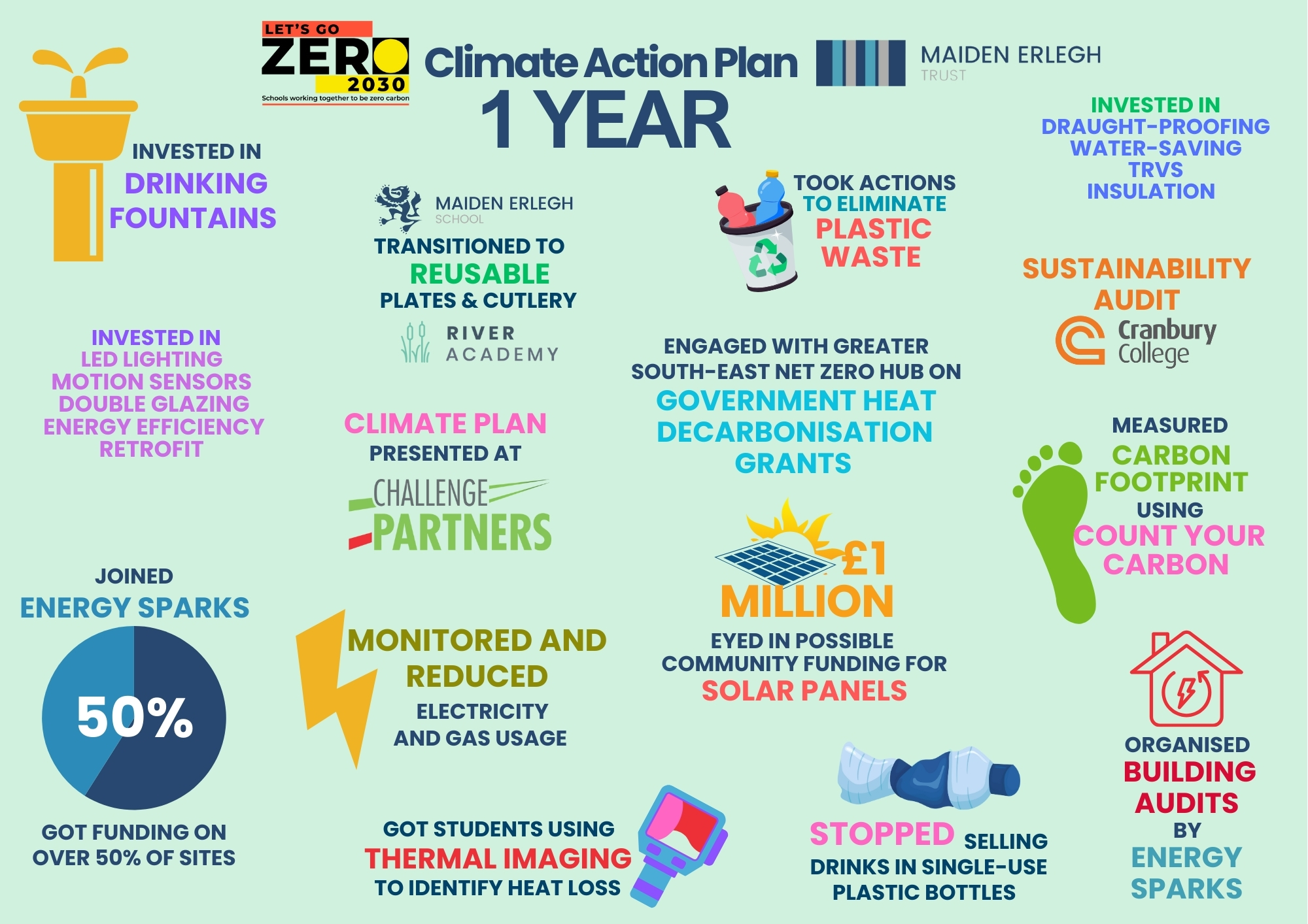 This week marks a significant milestone in our sustainability journey as we celebrate one year of working in partnership with our climate action advisors, Let’s Go Zero. Their expertise and guidance have been instrumental in helping us take our first confident steps towards decarbonisation across all nine schools and our Shared Services facilities.